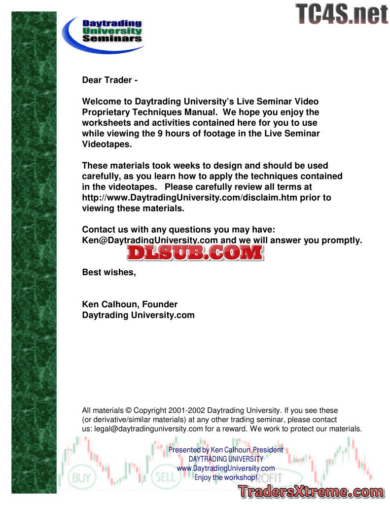 Calhoun Ken Advanced Daytrading Two Day Seminar Manual - JPG Image File