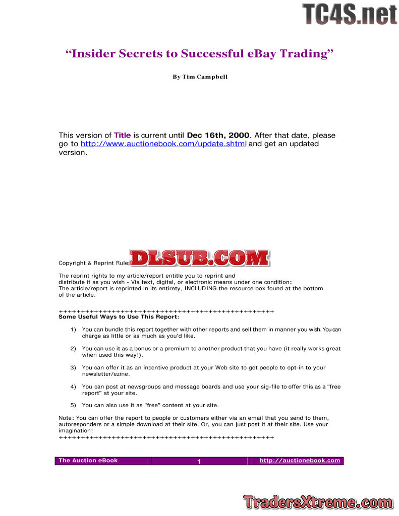 Campbell Tim Insider Secrets To Successful Ebay Trading - JPG Image File