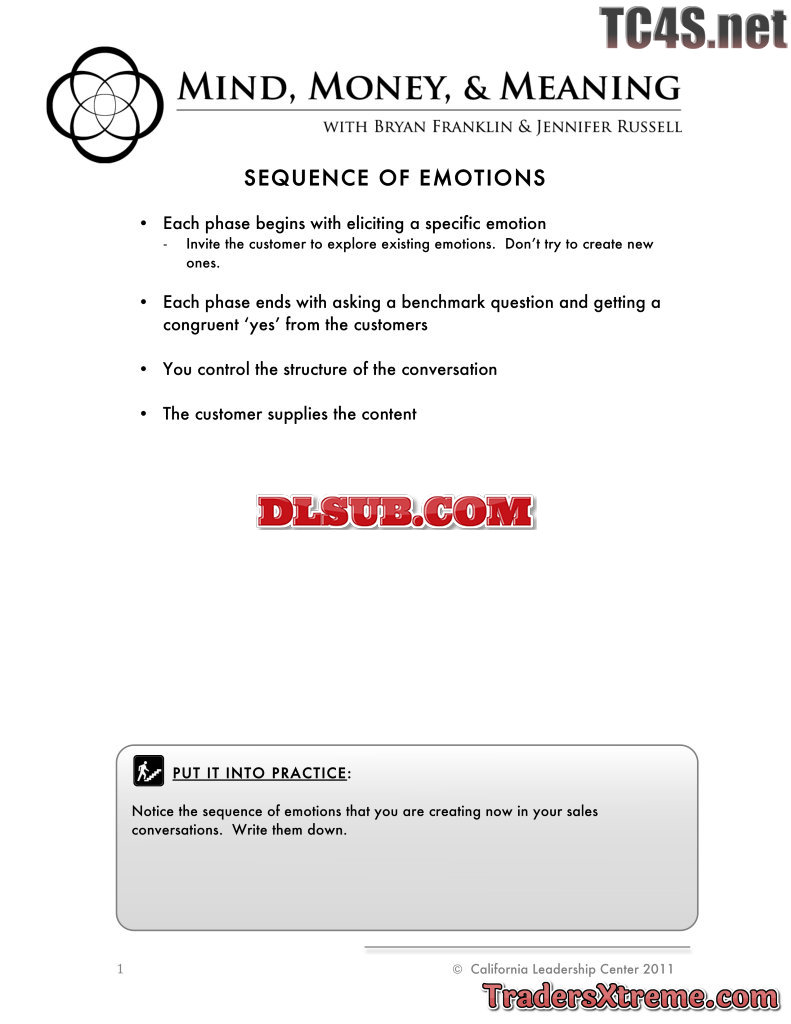 Bryan Franklin Sales Process 3 Sequence Of Emotions Worksheet - JPG Image File