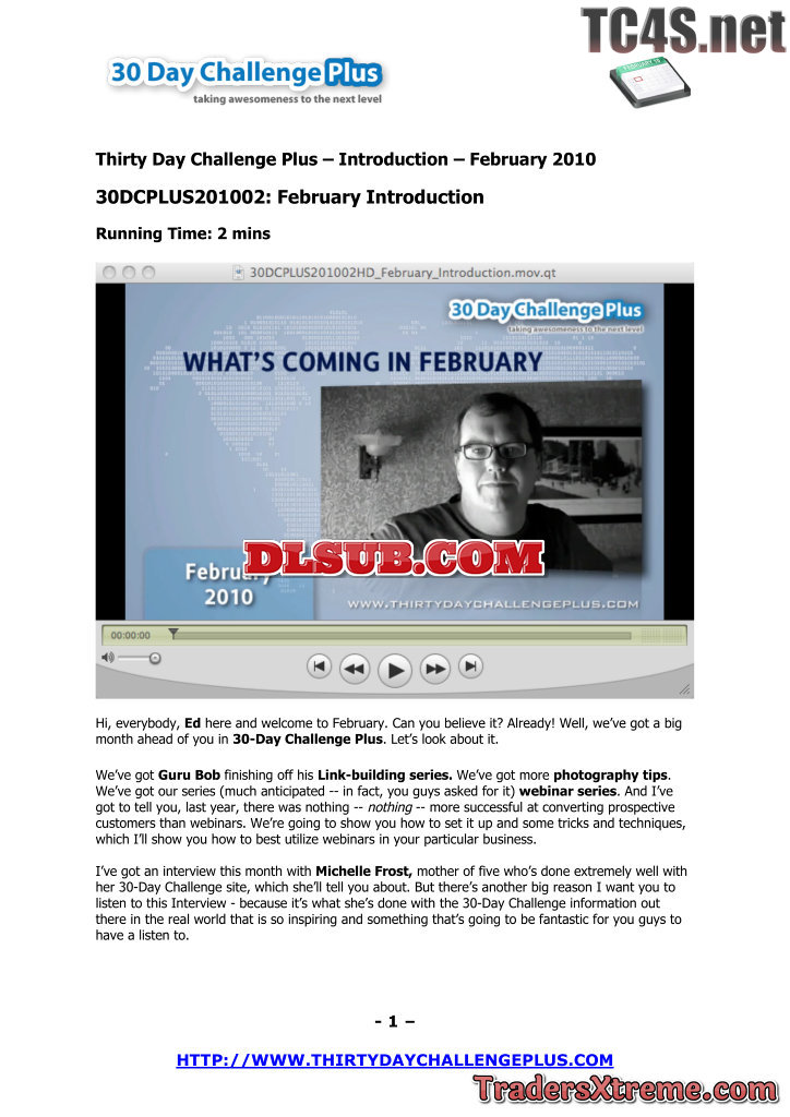 105 Thirty Day Challenge Plus Post 30dc Transcript - JPG Image File