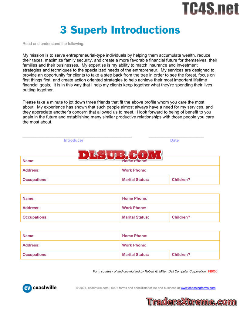 Script And Worksheet For Getting 3 Referrals Introductions - JPG Image File