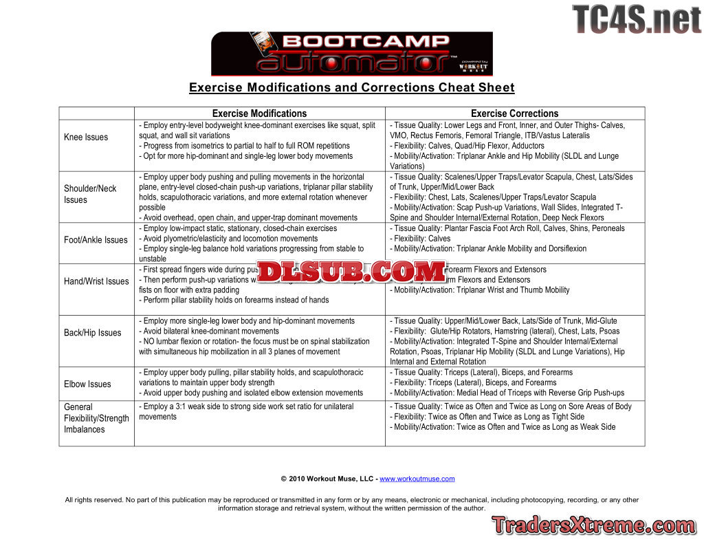 Exercise Modifications And Corrections Cheat Sheet - JPG Image File