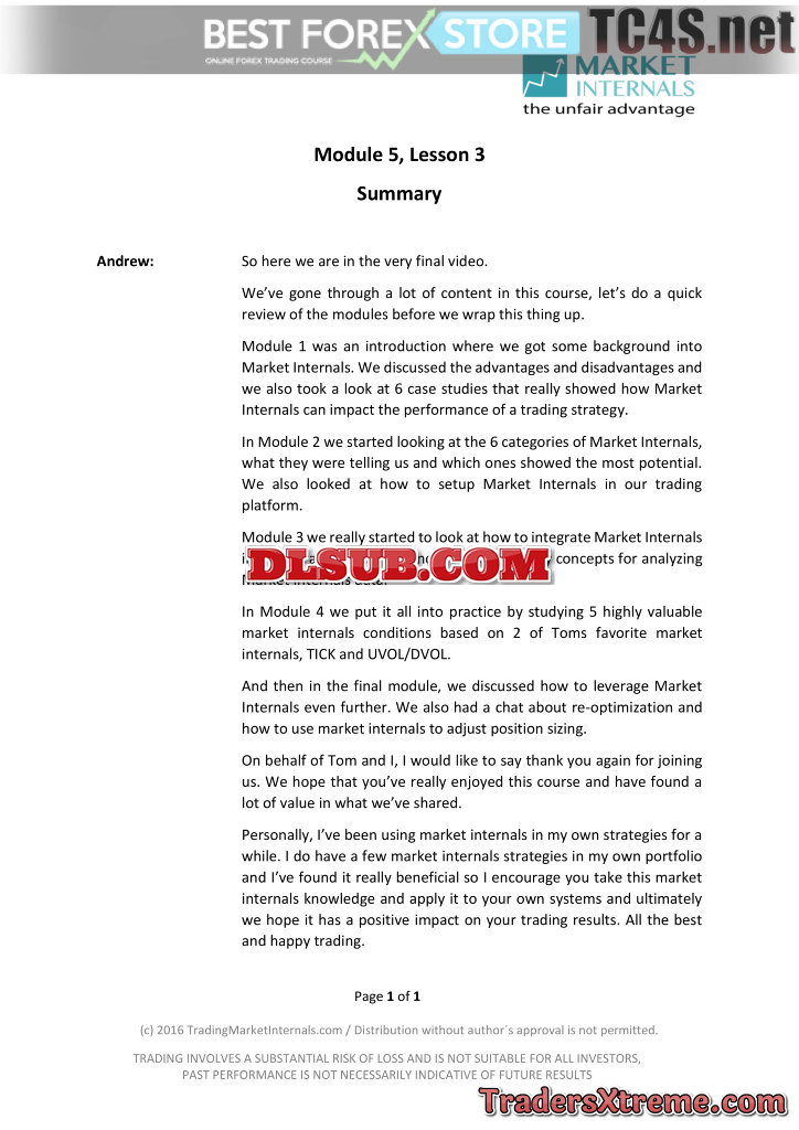 Module 5 Leveraging Your Market Internals Knowledge
