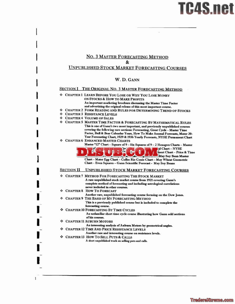 W D Gann Master Forecasting Method And Unpublished Stock Market Forecasting Courses